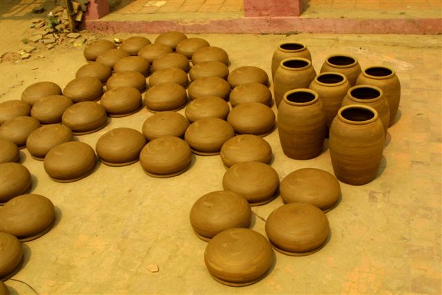 Pottery is set outside for a few days to dry before it is placed in the kiln |