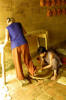 This old lady stands all day long and spins a pottery wheel with her leg while the young lady creates pots and other small trinkets to sell |
