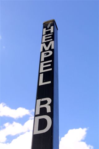 We just arrived in the Barossa Valley (a wine region in the middle of nowhere) when Chris looked down at the town map and saw a street sign called "Hempel Road." |