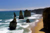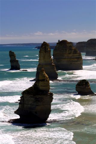 The Twelve Apostles are limestone rock stacks along the South-West Australia cost that have been pounded by the waves for centuries. From this view, only 7 of the apostles can be seen. |