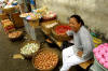 This old lady squats by the road hoping someone stops to buy some produce she is selling |
