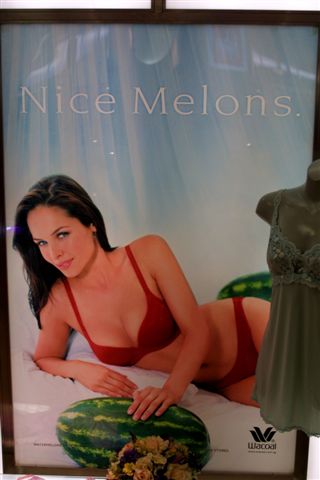 We could not believe our eyes when we spotted this ad in the lingerie section of a leading dept. store |