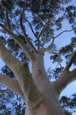 Many of the eucalyptus trees have formed incredible patterns on their trunks as they loose or shed a "paper like" bark. The width of this massive gum tree was about the size of my arm span -- over 6 feet. |