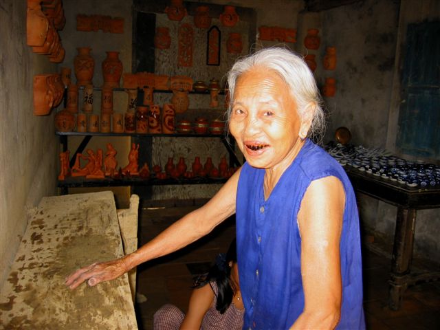 This old lady stands all day long and spins a pottery wheel with her leg while the young lady creates pots and other small trinkets to sell |
