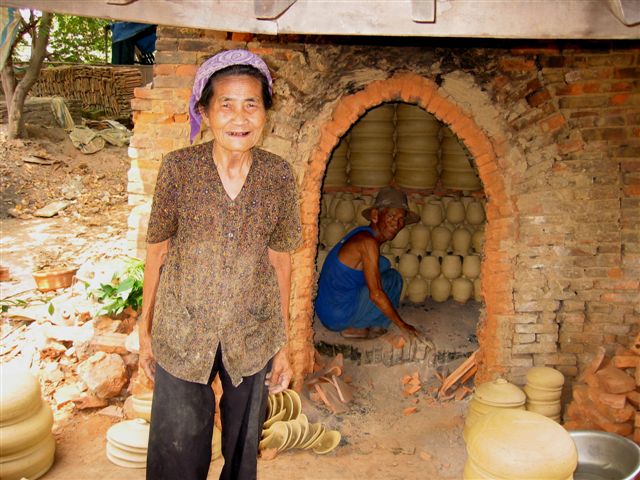 This old kiln is made out of bricks and the people in this village use wood to heat it up and fire the pottery |