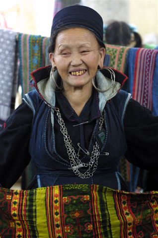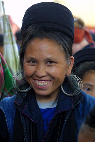 Hill tribe lady with pretty eyes, big smile and heavy earrings |