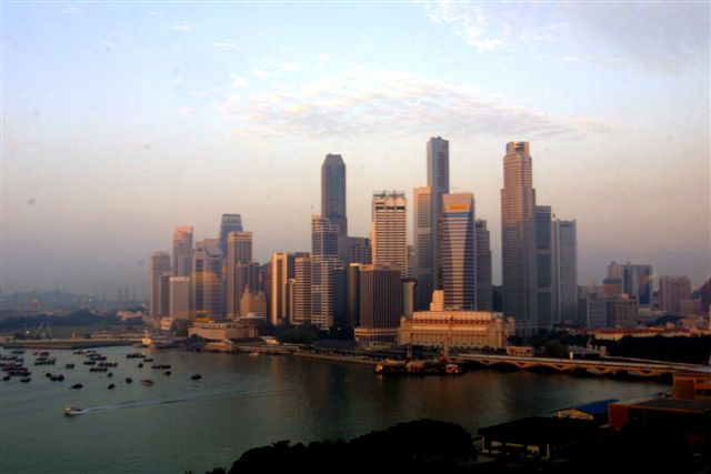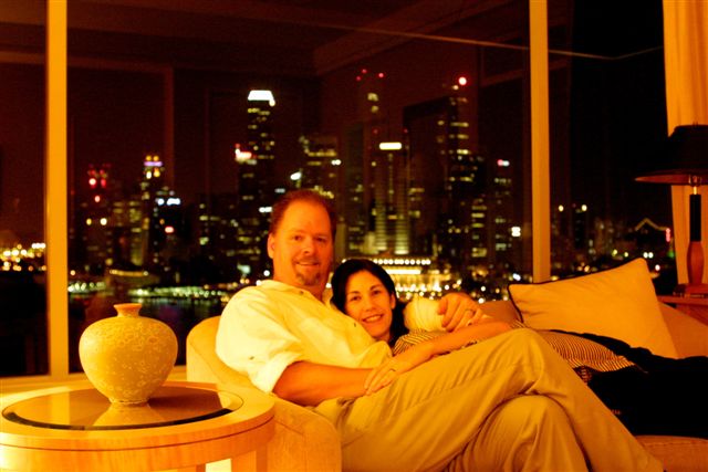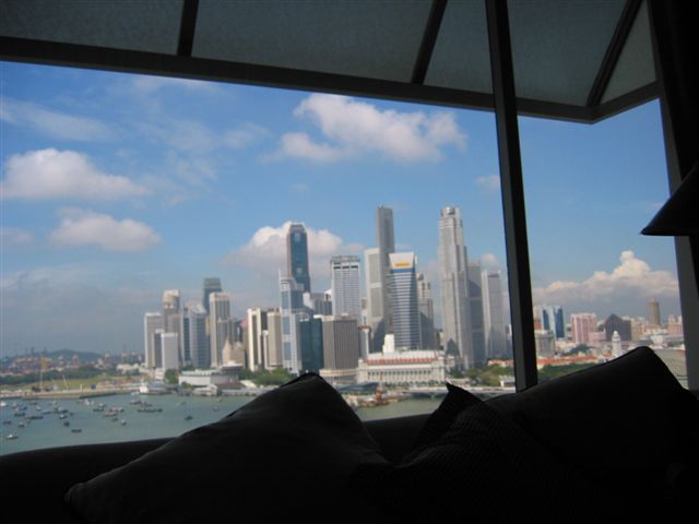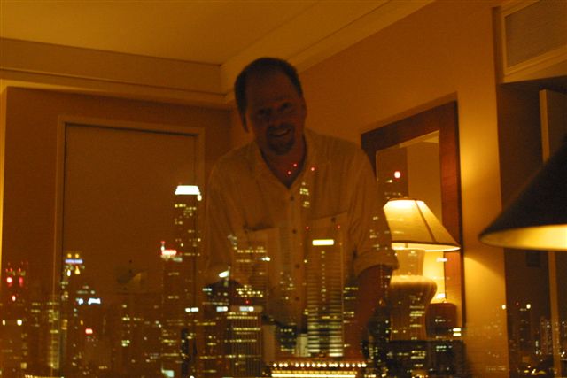 Minutes after we arrived at the Ritz Carlton, we started taking pictures of the Singapore skyline. Chris captured this image of Hugh's reflection in the window glass |