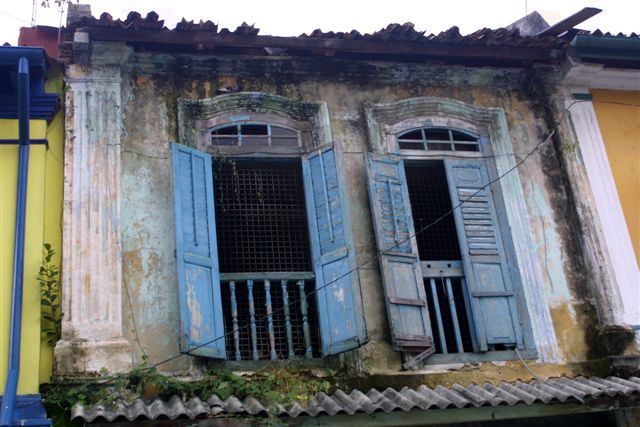 Many of the houses on the side streets in Little India were run down, like this one. |