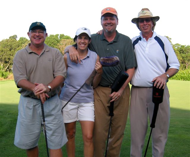 New friends Peter Miles and David Boward show us a great time at the manicured Australian Golf Club. We got to see the spot where Greg Norman hit a double eagle from about 250 meters around a blind dog-leg left! |
