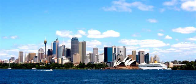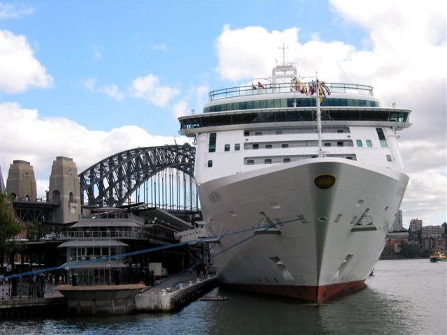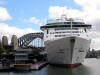You can see the harbor bridge and the Opera House in the background. They paint the smoke stack of the QE2 everytime she comes to port. Beautiful ship! |