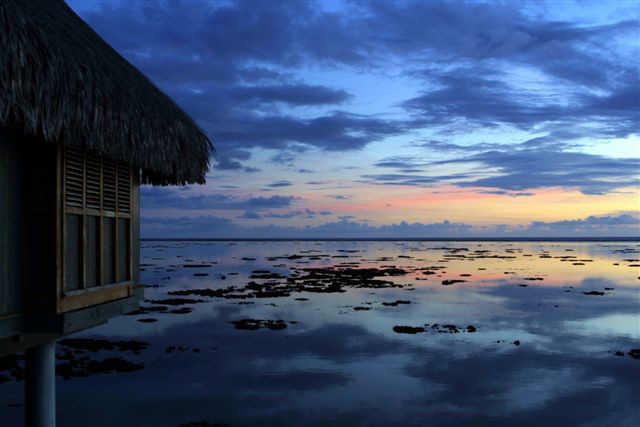 Our bungalow was built on a big "dock" and we watched the sunset from the end where there was a swimming platform. |