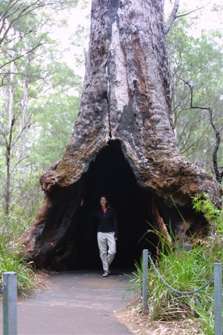 It's amazing that these trees stay upright. This tree was burned out from fire and by natural spores that eat away at the inner core. |